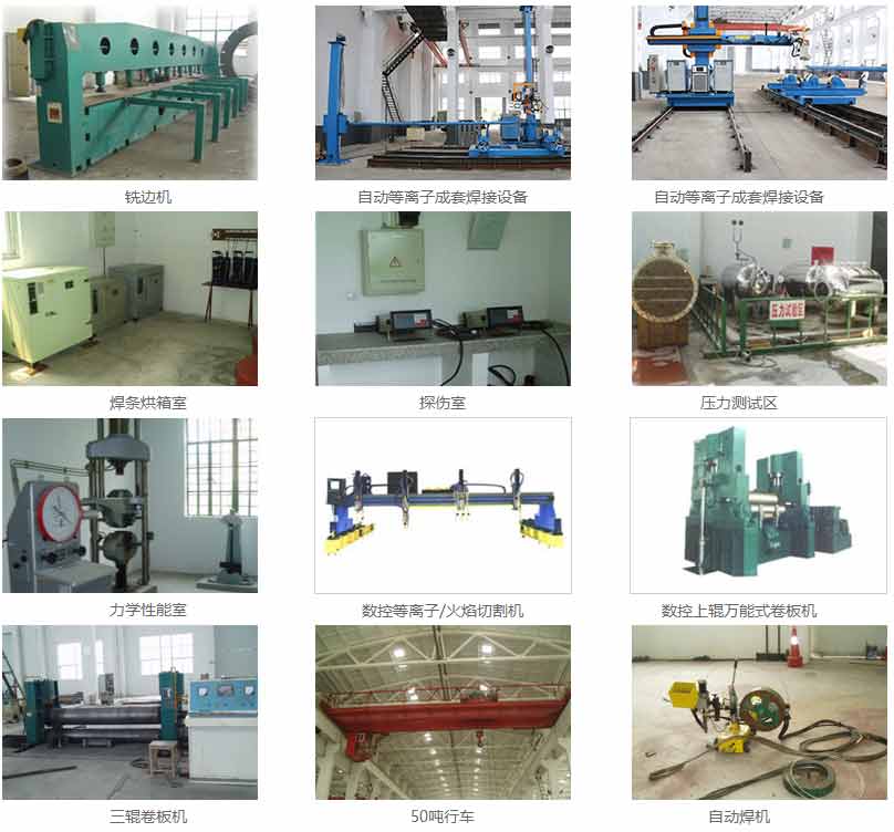 各类卷板机3台套,大型四芯卷板机最大厚度可达40mm;交直流埋弧机3台套,手弧焊、亚弧焊、等离子切割机;xb-9大型铣边机;15t-50t反滚架四台;13×2500剪板机3台;起重桥式行车5台;1200t油压机;30t地中衡;各类金属切削机床等117台。